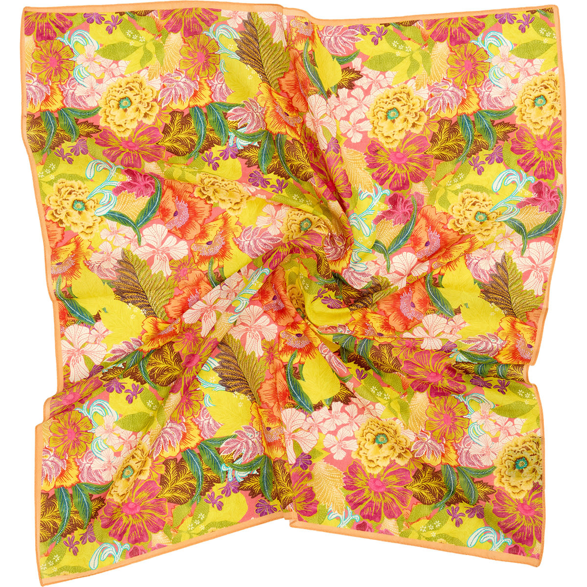 Lille kvadratisk tørklæde i 100% Økologisk Bomuld med småblomstret all-over print og ensfarvet kant. Mange styling muligheder.