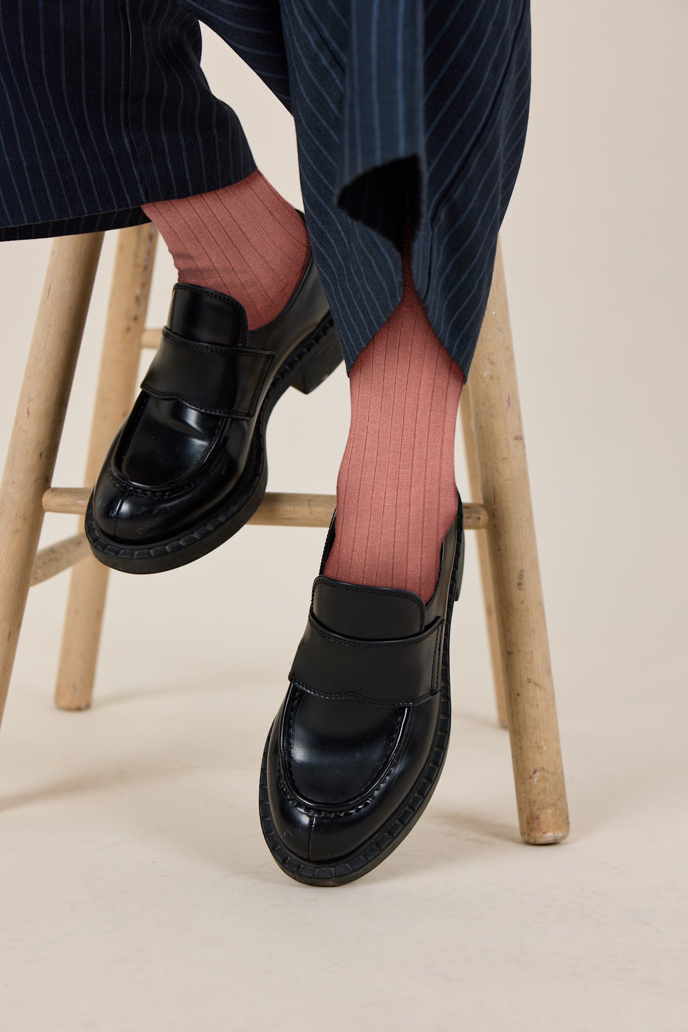 Smuk klassisk strømpe, der med sine bløde silke fibre, føles lette og behagelige mod huden. Den fine ribstruktur giver et stilrent og eksklusivt udtryk. Perfekte til både hverdag og særlige anledninger.