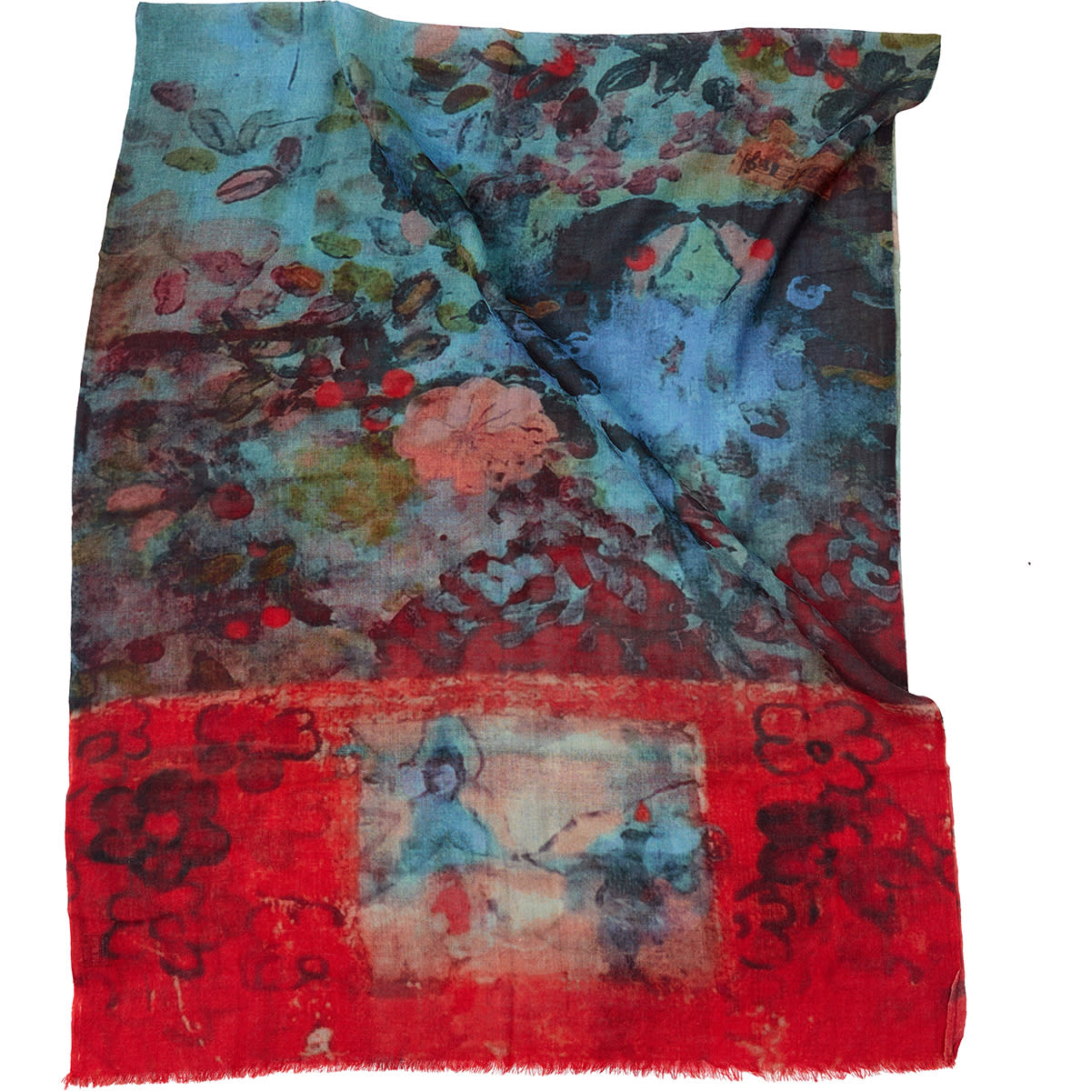 Avlång Halsduk i en mjuk ull/siden kvalitet med abstrakt print och råa kanter.