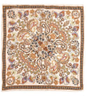 Kvadratisk Skjerf med paisley-motiv i gyldne toner og ensfarget kant.