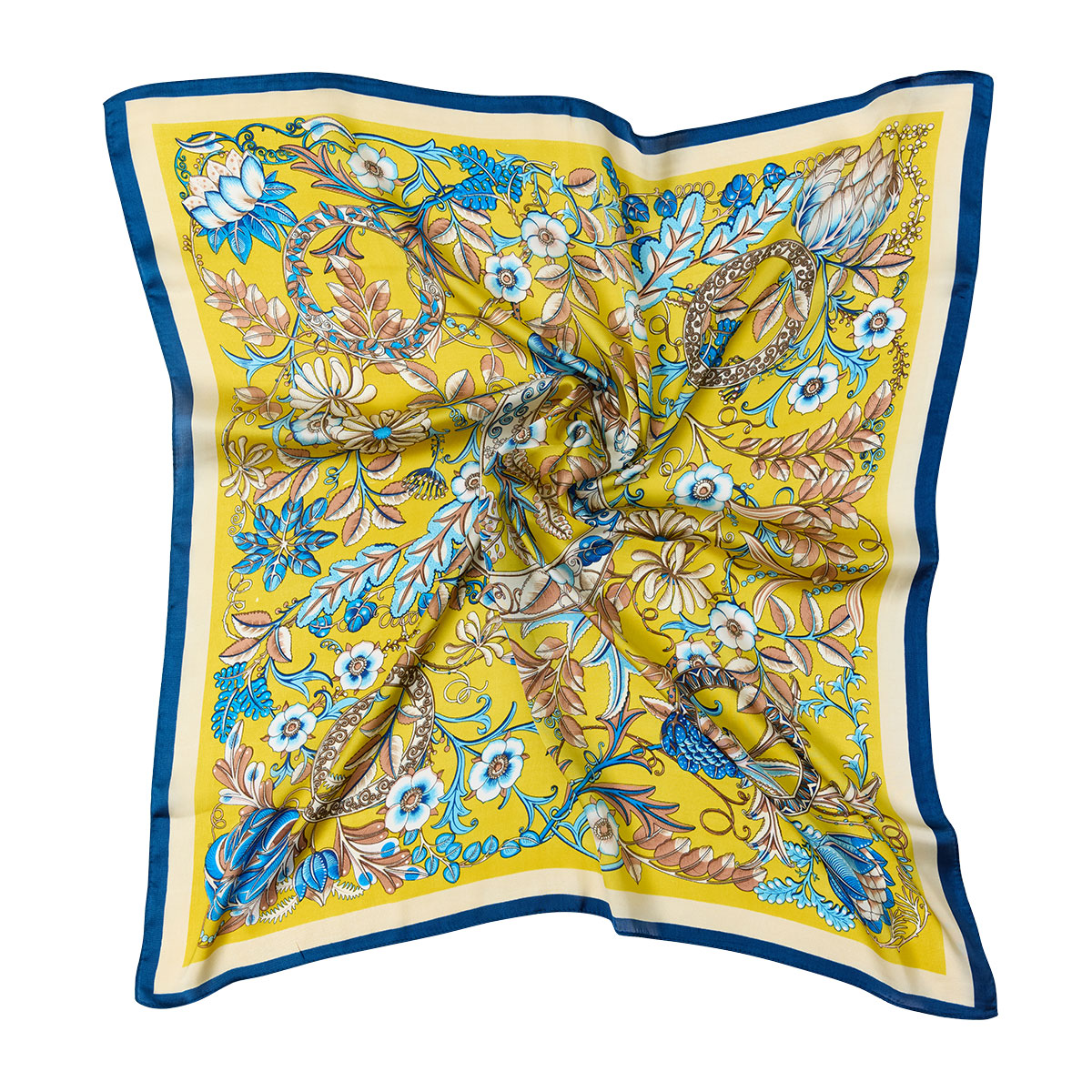 Kvadratisk tørklæde med blomster motiv og med ensfarvet kant.