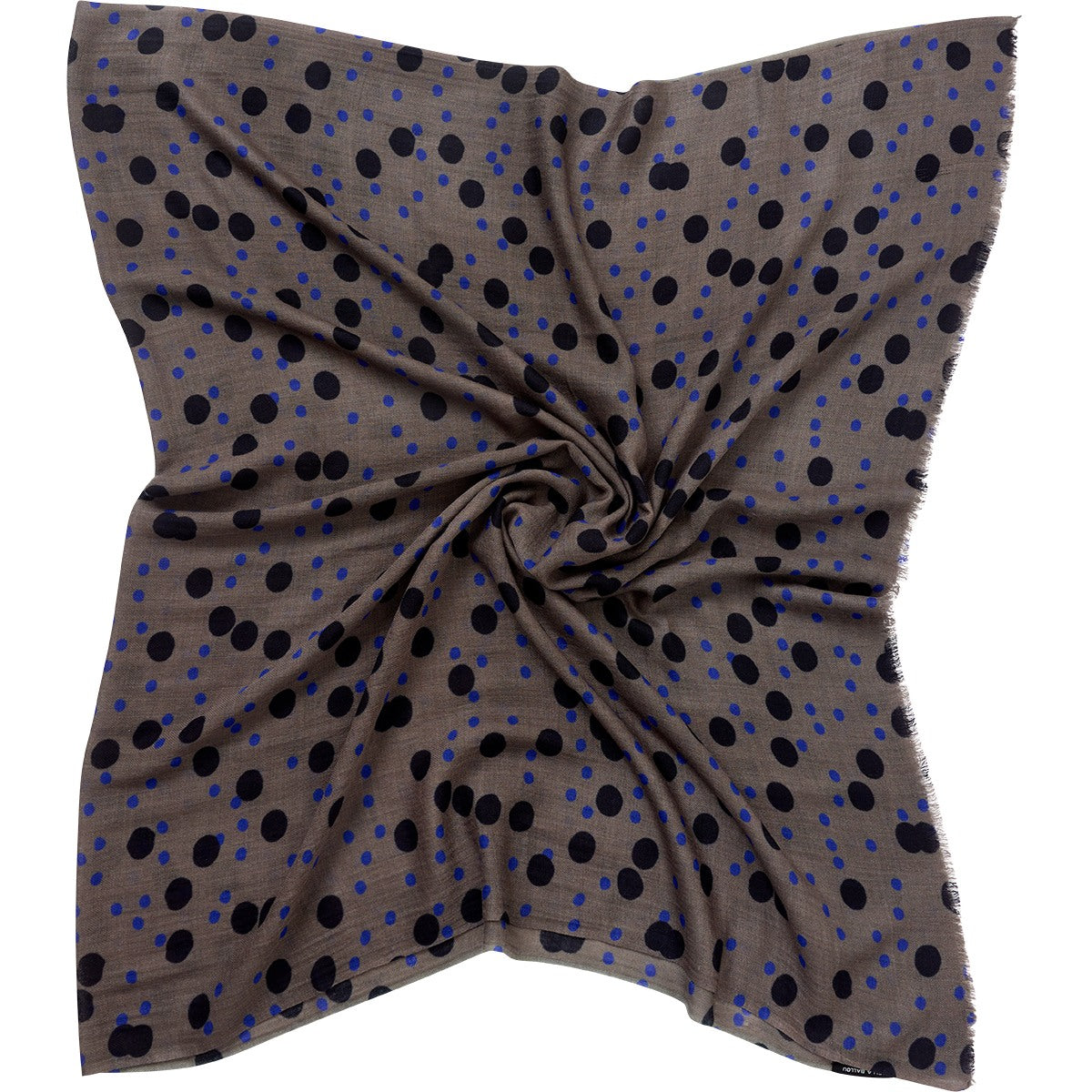 Stort, bredt og aflangt tørklæde i en eksklusiv uld kvalitet med prikker og rå ender.
